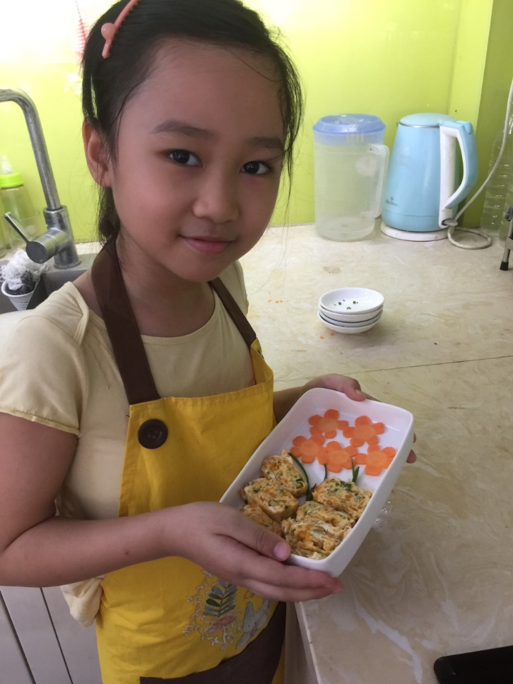 Con còn là một cô bé ngoan, thường xuyên giúp mẹ làm việc nhà.