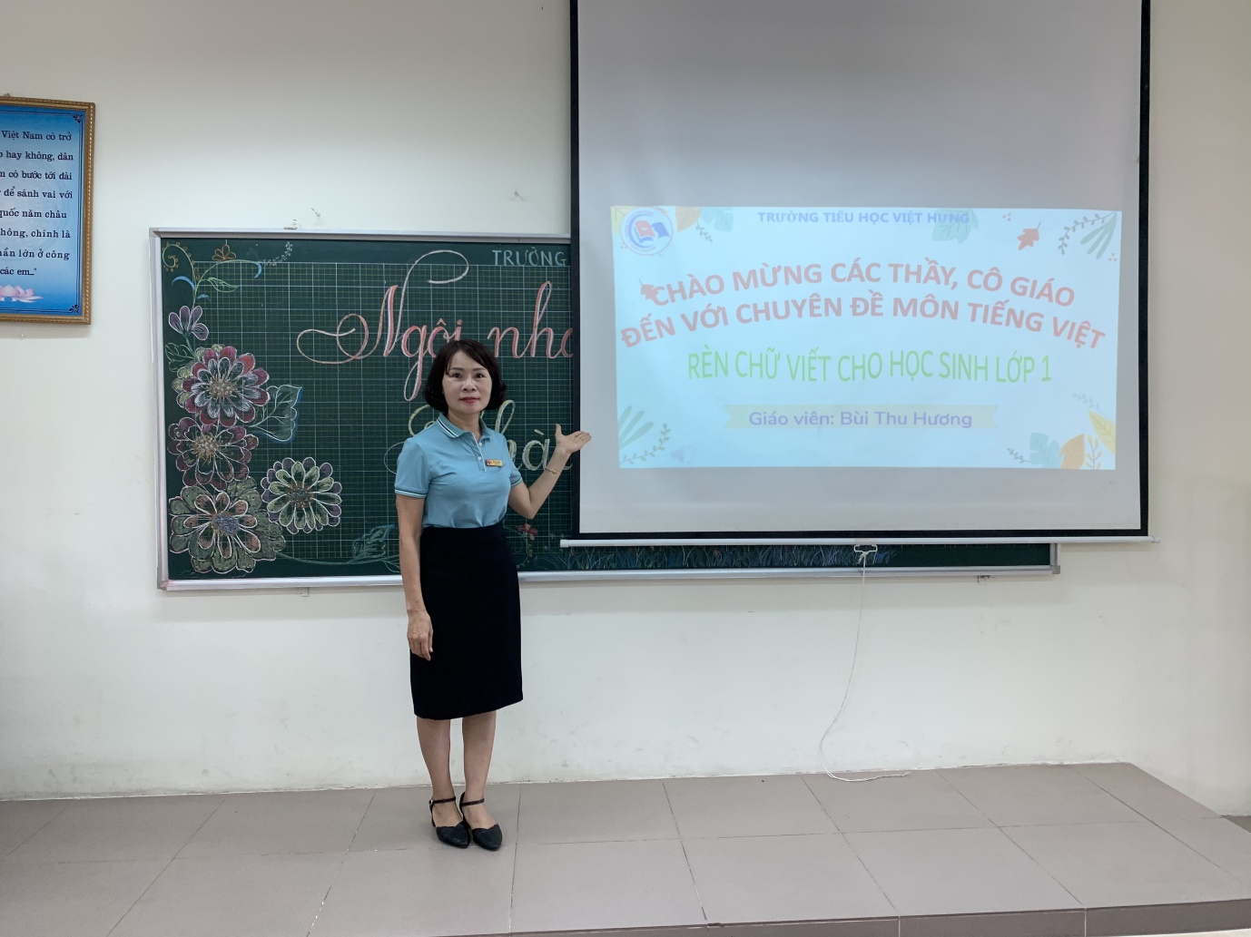 Thực hiện theo kế hoạch công tác chuyên môn năm học 2022- 2023, ngày 09/8/2022, tổ 1 trường Tiểu học Việt Hưng thực hiện hai chuyên đề Tiếng Việt do hai cô giáo Bùi Thu Hương và Ngô Thị Thu Trang giảng dạy. Trong đó, cô Ngô Thị Thu Trang chia sẻ kinh nghiệm “Rèn kĩ năng đọc”, cô Bùi Thu Hương chia sẻ kinh nghiệm “Rèn kĩ năng viết” cho giáo viên dạy khối 1, 2.