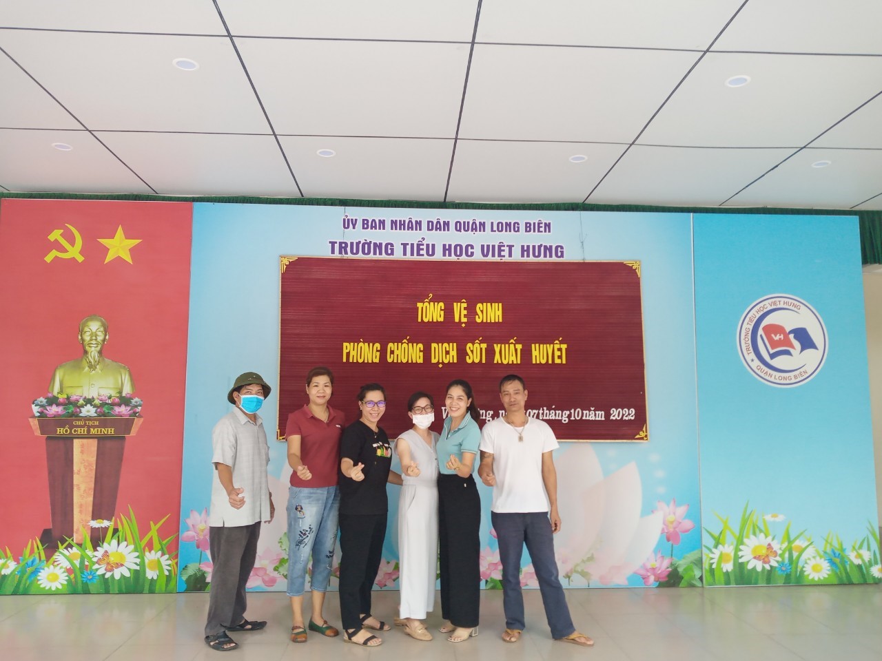 Để đảm bảo công tác phòng, chống sốt xuất huyết trong nhà trường hiệu quả, không để dịch chồng dịch, Trường Tiểu học Việt Hưng thực hiện các biện pháp vệ sinh hàng ngày: vệ sinh khung cảnh sư phạm, vệ sinh trường lớp…và tổng vệ sinh toàn trường vào chiều thứ 6 hàng tuần.