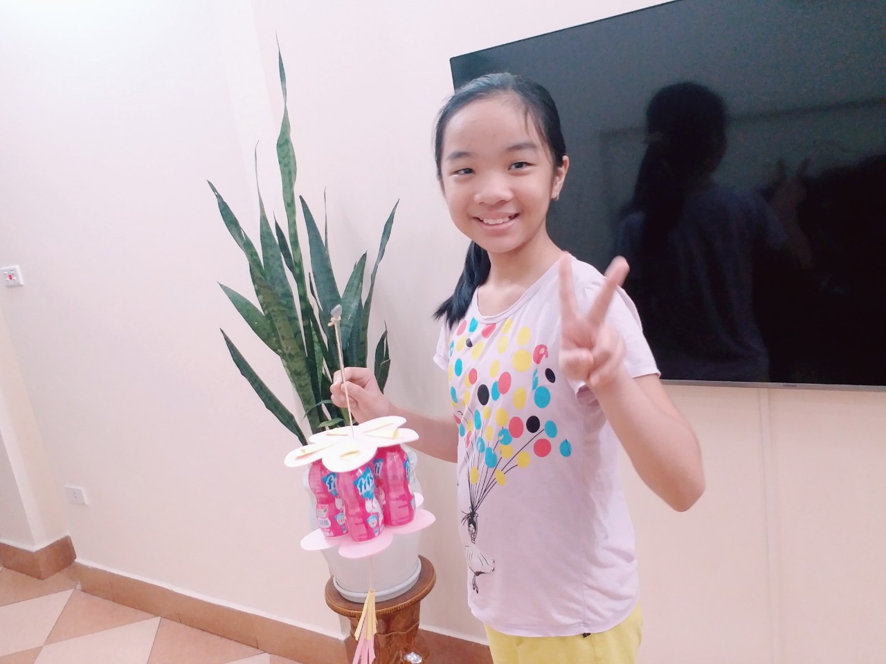 Diệu Linh có chiếc đèn lồng dễ thương làm từ vỏ sữa.