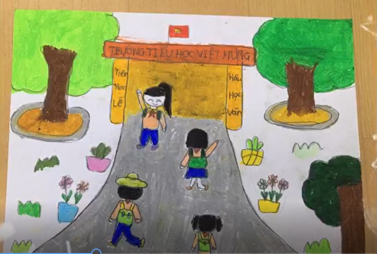 Đại dịch COVID-19 gây ra khó khăn cho toàn nhân loại, khiến cho các bạn học sinh chỉ có thể học online mà không thể đến trường mặc dù như vậy các bạn nhỏ ngày ngày vẫn mong ước được đến trường, mang hết nỗi nhớ thả gửi vào bài vẽ.