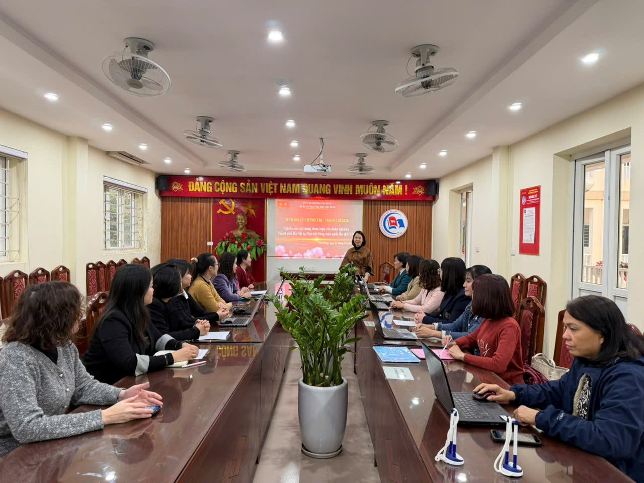 Buổi sinh hoạt tập trung phân tích sâu sắc chủ đề “Đổi mới phương thức lãnh đạo của Đảng bộ Thủ đô đáp ứng yêu cầu phát triển trong kỷ nguyên mới”. Điểm nhấn của buổi thảo luận là mô hình quản trị hiện đại: “Đảng bộ số - Chính quyền kiến tạo - Doanh nghiệp tiên phong - Xã hội đồng thuận”. Chi bộ nhà trường xác định, để hiện thực hóa tầm nhìn này, mỗi cán bộ, giáo viên phải là một "hạt nhân" đổi mới. Tinh thần “6 dám”: Dám nghĩ, dám nói, dám làm, dám chịu trách nhiệm, dám đổi mới sáng tạo, dám đương đầu với khó khăn được cụ thể hóa thành quyết tâm đổi mới phương pháp dạy học, không ngại việc khó, việc chưa có tiền lệ để nâng cao chất lượng giáo dục.