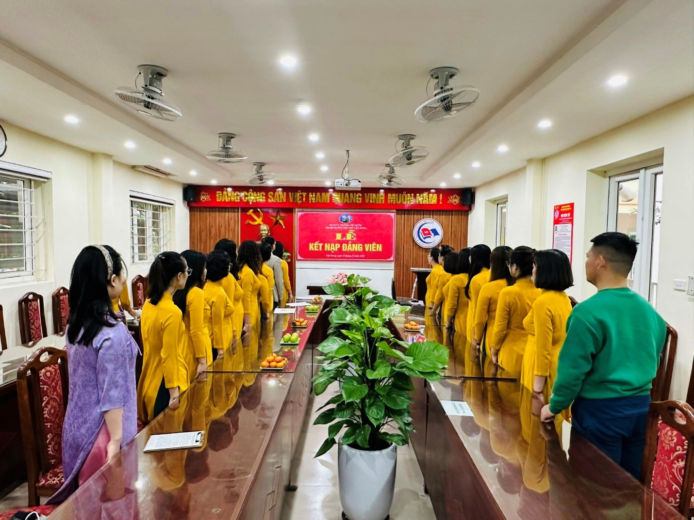 Đến dự Lễ Kết nạp Đảng viên của Chi bộ nhà trường, có đồng chí Vũ Hoàng Long - Phó Bí thư thường trực Đảng ủy phường Việt Hưng, đồng chí Nguyễn Thị Thức - Bí thư chi bộ, Hiệu trưởng nhà trường cùng toàn thể các đồng chí đảng viên trong Chi bộ. Buổi lễ diễn ra trong không khí trang nghiêm, đúng trình tự, đầy đủ thủ tục theo quy định.