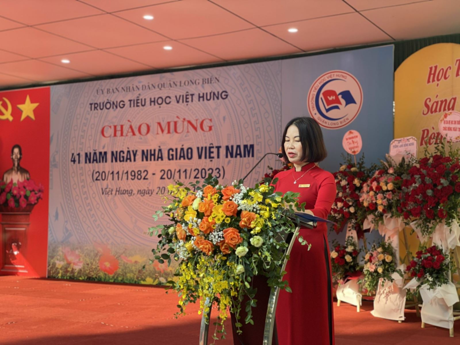 Ngày 28/9/1982, Đại tướng Võ Nguyên Giáp đảm nhiệm vị trí Phó Chủ tịch Hội đồng Bộ trưởng ký Quyết định số 167/HĐBT lấy ngày 20/11 hàng năm là Ngày Nhà giáo Việt Nam. Từ đó đến nay, ngày 20/11 trở thành ngày hội lớn của toàn dân nhằm tôn vinh và tri ân đến các thầy giáo, cô giáo và nghề dạy học cao quý. Và mỗi khi tháng 11 về, tất cả những thế hệ học sinh lại hướng về thầy cô giáo với tấm lòng biết ơn sâu sắc nhất. Hòa chung không khí ấy, sáng ngày 20/11, Trường Tiểu học Việt Hưng long trọng tổ chức chương trình chào mừng 41 năm ngày Nhà giáo Việt Nam (20/11/1982 – 20/11/2023).