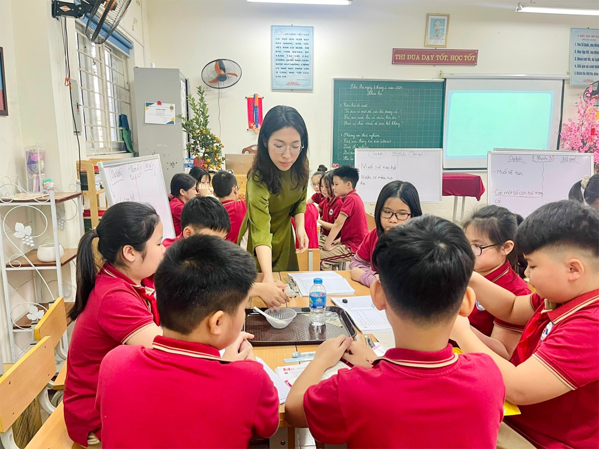 Thực hiện kế hoạch giáo dục nhà trường, ngày 06/02/2024, ngay trước kì nghỉ Tết Nguyên đán, cô giáo Nguyễn Hà Thu lớp 5A6 thực hiện tiết chuyên đề khối 5 áp dụng phương pháp “Bàn tay nặn bột” bài “Dung dịch” mang lại hiệu quả cao.