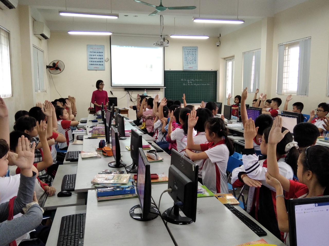 Với tâm thế tự tin trên bục giảng, cô giáo đã dẫn dắt học sinh vào vấn đề một cách nhẹ nhàng. Sáng tạo trong việc dạy học ứng dụng CNTT, nhẹ nhàng và linh hoạt trong xử lý các tình huống sư phạm, giáo viên và học sinh đã đạt được mục tiêu của tiết học. Học sinh được trải nghiệm qua việc thực hành, các em không những nắm chắc kiến thức mà còn tạo không khí học tập phấn khởi hơn, tiếp thu bài nhanh hơn, có chất lượng thực sự. Đa số học sinh hiểu và làm được bài ngay tại lớp. Đặc biệt qua tiết học các em đã có thể tự truy cập vào trang Web của trường và tìm đọc những thông tin những bài viết về ngôi trường thân yêu của các em. Giúp các em yêu thích môn học, có hứng thú, tập trung trong học tập và thêm yêu ngôi trường Tiểu học Việt Hưng. Qua giờ học Tin học, học sinh được phát triển các năng lực: Năng lực sử dụng và quản lý các phương tiện công nghệ thông tin và truyền thông như khả năng khai thác ứng dụng trên Internet để phục vụ cho việc học tập và đời sống hàng ngày.
