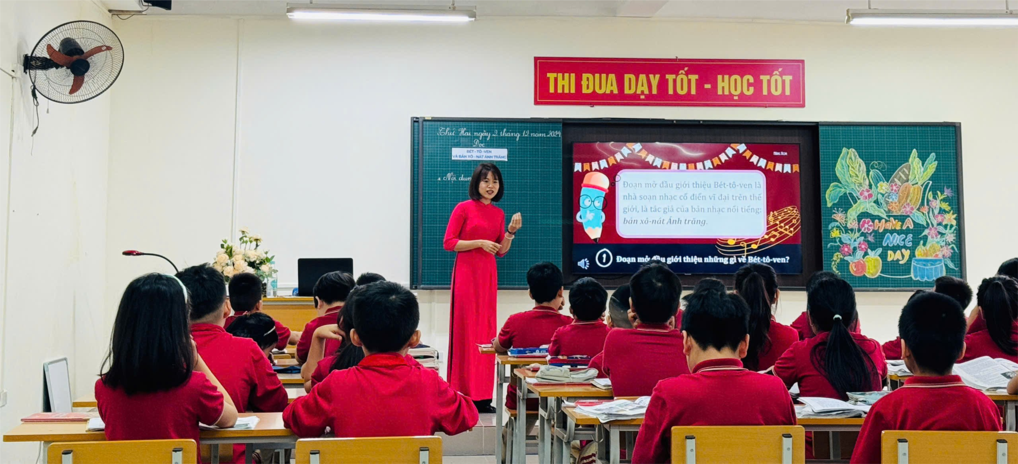 đọc truyền cảm, đầm ấm, nhẹ nhàng cô Thùy Dung đã dẫn dắt học sinh bắt đầu tiết