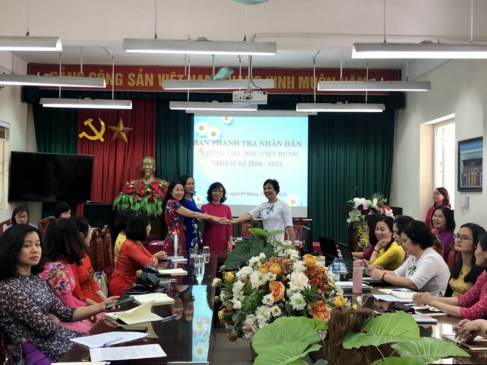 Hò !important;a trong không khí tưng bừng chào mừng Thủ đô tròn 1010 tuổi, Thủ đô rợp trời cờ đỏ sao vàng, băng rôn, khẩu hiệu hân hoan chào đón Đại hội Đảng bộ thành phố Hà Nội lần thứ 17, hôm nay, ngày 9 tháng 10 năm 2020, trong tiết trời se lạnh của những ngày cuối thu, tập thể cán bộ giáo viên, nhân viên trường Tiểu học Việt Hưng long trọng tổ chức Hội nghị Cán bộ, viên chức và người lao động năm học 2020 - 2021.