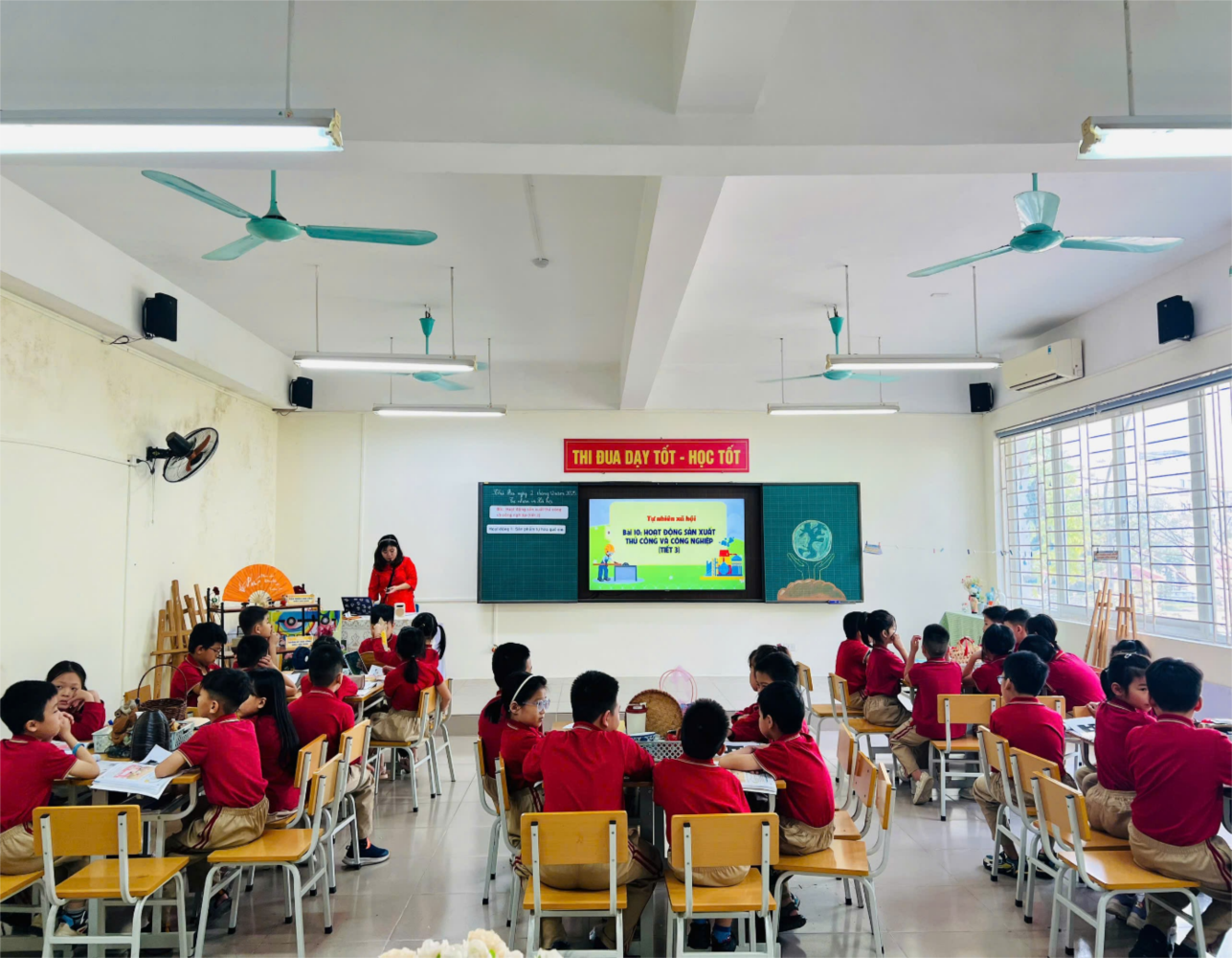 tầm như đồ mây tre đan, gốm sứ, mô hình máy móc… giúp các em hiểu rõ hơn về đặc
