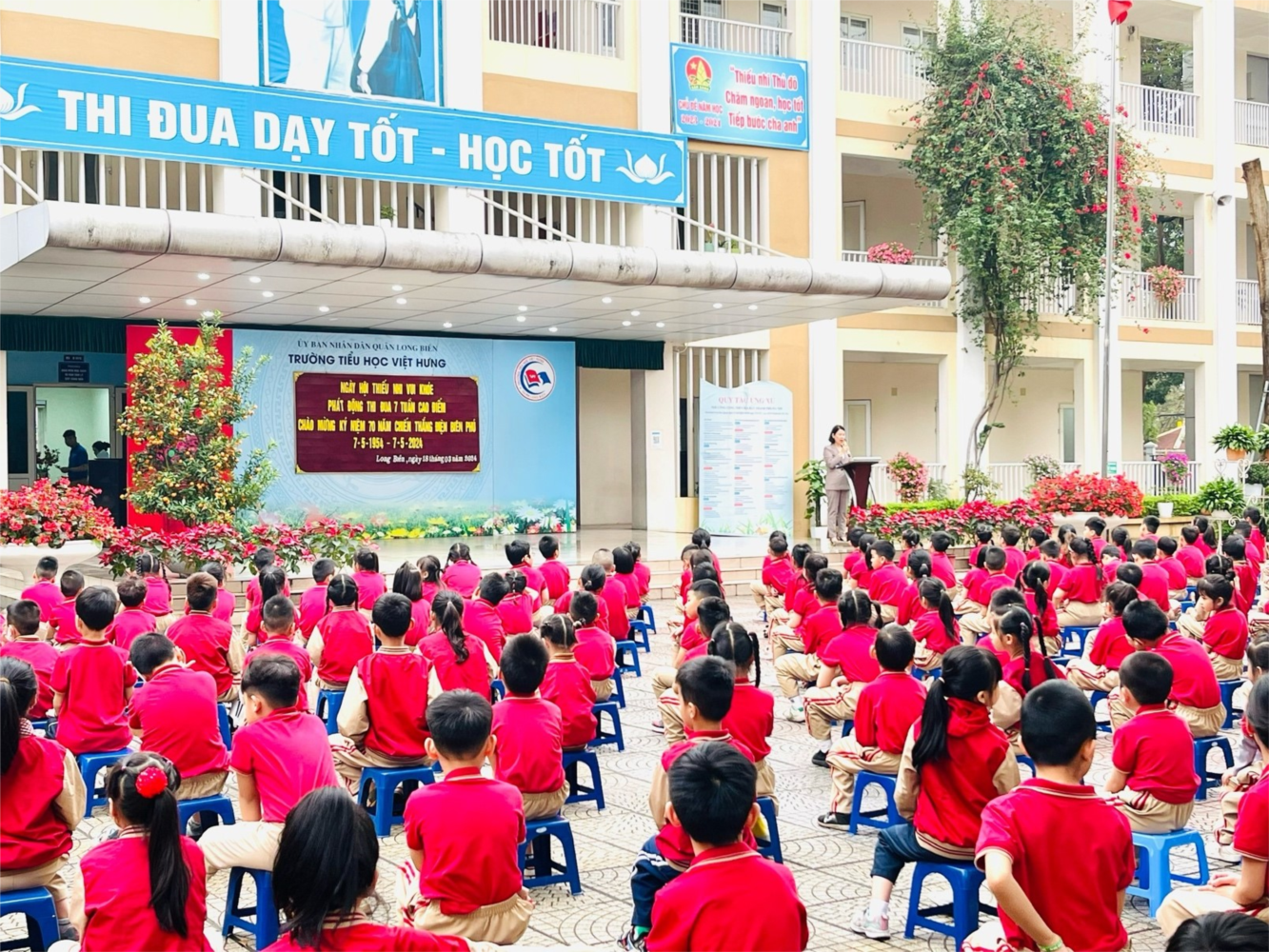 Sáng ngày 18/03/2024, Trường Tiểu học Việt Hưng tưng bừng tổ chức “Ngày hội Thiếu nhi Vui khỏe” chào mừng kỉ niệm 93 năm Ngày thành lập Đoàn TNCS Hồ Chí Minh (26/03/1931 – 26/03/2023) và phát động thi đua chào mừng kỉ niệm 70 năm chiến thắng Điện Biên Phủ (7/5/1954 – 7/5/2024).