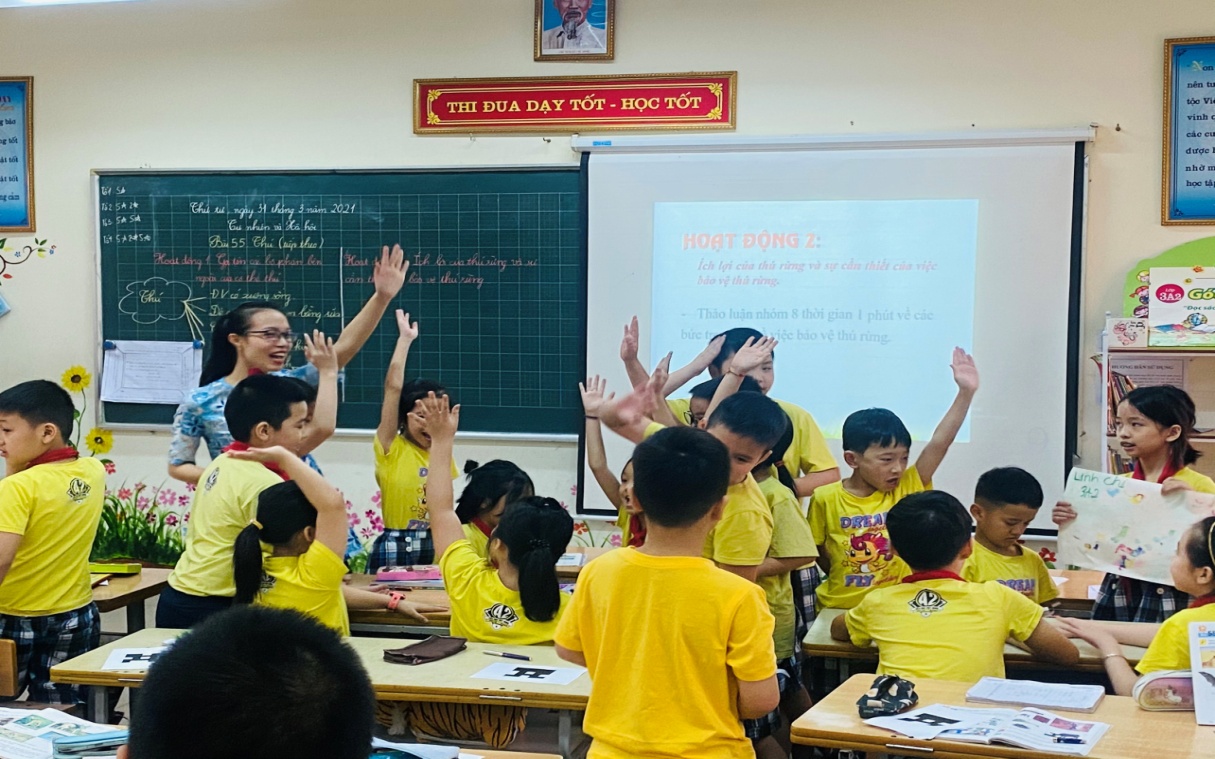 Tiết Tự nhiên và Xã hội do cô giáo Bùi Thị Thanh Tú thực hiện với học sinh lớp 3A2 thực sự là tiết học hạnh phúc. Mở đầu tiết học, cả lớp được tham gia giải cứu những con vật qua trò chơi: “ Giải cứu rừng xanh”. Bằng vốn kiến thức, hiểu biết thực tế, các em được dùng thẻ plicker để cứu những con vật đáng thương đang bị lão thợ săn giam giữ. Cả lớp còn được cô giáo quét mã, thống kê số lượng học sinh chọn đáp án đúng trong trò chơi…Mỗi con vật được giải cứu mang lại niềm vui, nụ cười sảng khoái của cả lớp.