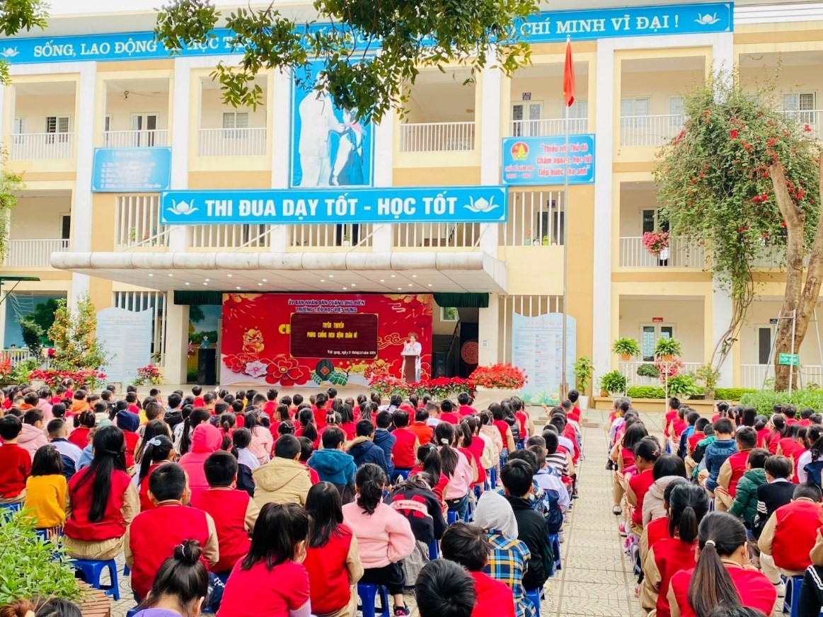 Nối tiếp chương trình là nội dung tuyên truyền “Phòng chống dịch bệnh xuân hè” do cô Bích Huệ triển khai tới toàn thể học sinh.