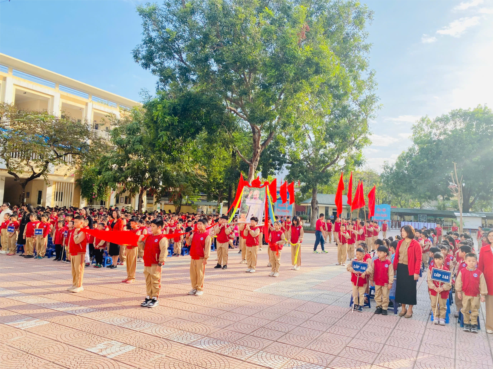 – Hiệu trường nhà trường châm lên đài lửa thiêng.