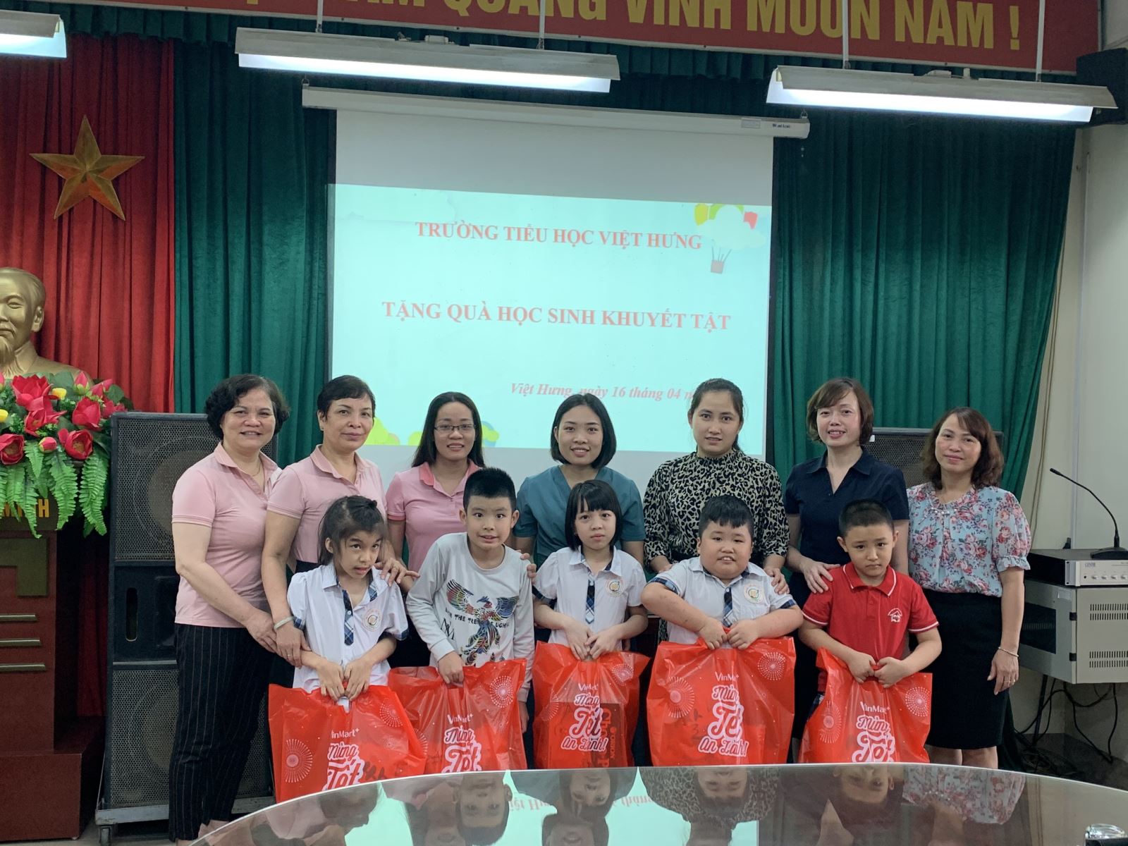 Nhân kỉ niệm “Ngày bảo vệ, chăm sóc người tàn tật”, sáng nay 16/4/2021, trường Tiểu học Việt Hưng đã tổ chức lễ trao quà cho học sinh khuyết tật theo học tại trường. Đến với buổi lễ có các đồng chí trong Cấp ủy, BGH và các đồng chí đại diện cho Công đoàn nhà trường. Trong buổi lễ, nhà trường đã tặng 5 phần quà, mỗi phần quà trị giá 200.000đ cho các em học sinh.