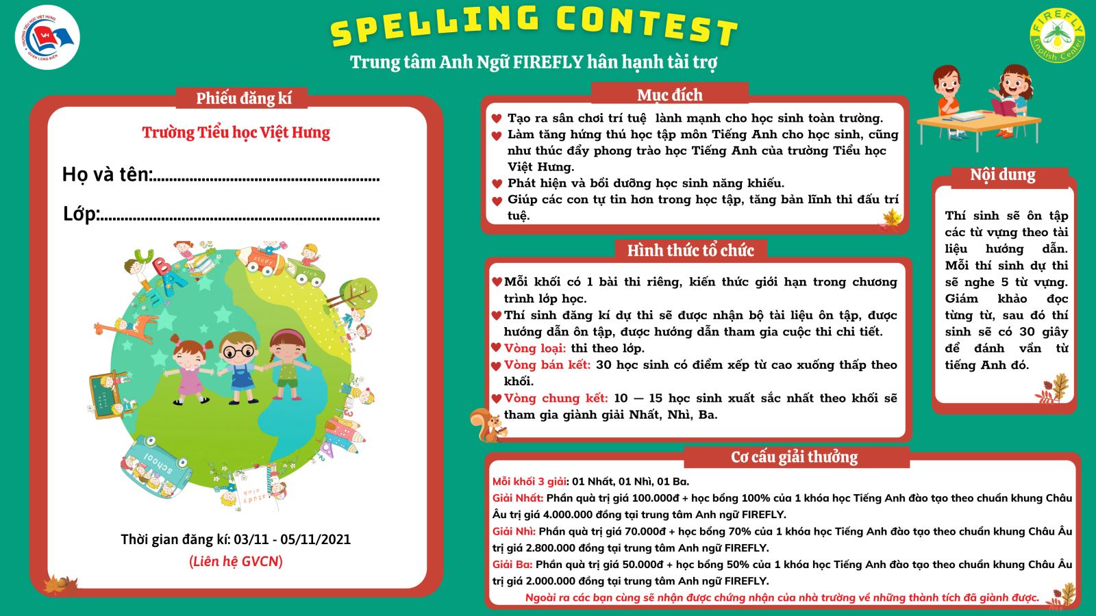 * Cơ cấu giải thưởng: (Trung tâm Anh Ngữ FIREFLY hân hạnh tài trợ)