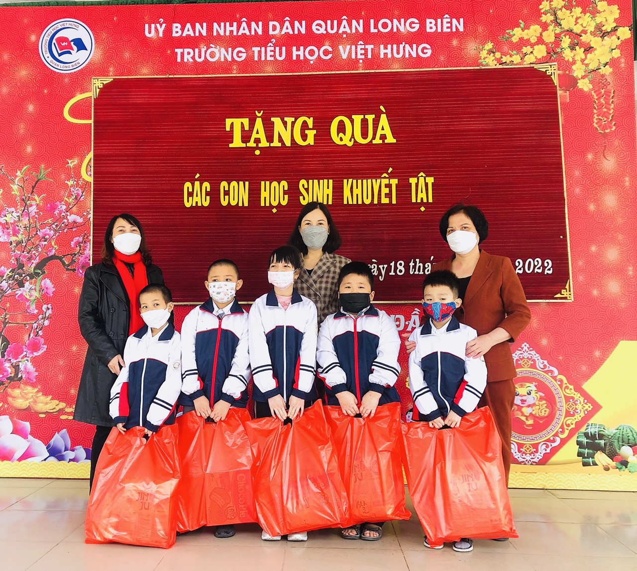 Trường Tiểu học Việt Hưng hiện có 06 em học sinh khuyết tật đang theo học hòa nhập, mỗi em được trao tặng một phần quà trị giá 200 ngàn đồng. Món quà tuy nhỏ nhưng thể hiện sự quan tâm, tình cảm yêu thương của các thầy cô giáo dành cho các em.
