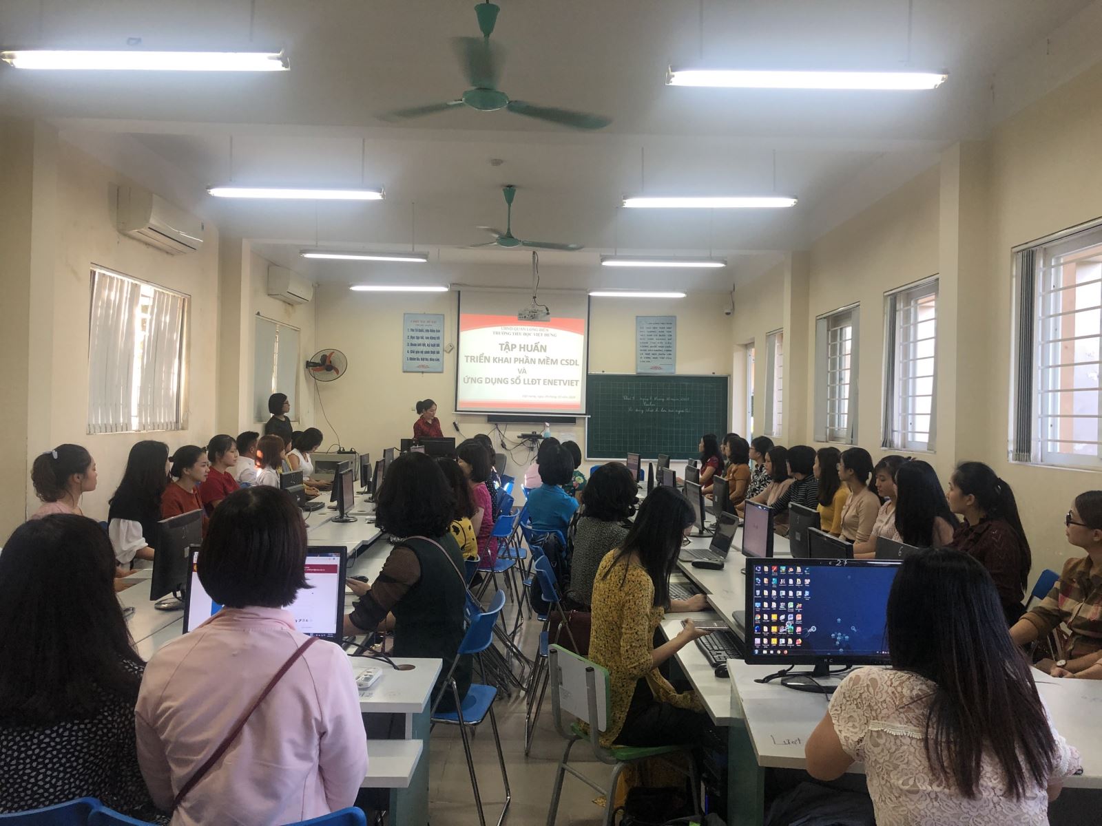 Thực hiện Công văn số 2868/SGD ĐT-VP ngày 08/9/2020 của Sở Giáo dục và Đào tạo về triển khai phần mềm truyền thông giáo dục hỗ trợ công tác chỉ đạo, điều hành ngành giáo dục, ngày 09/10/2020, trường Tiểu học Việt Hưng đã tổ chức buổi tập huấn phần mềm cơ sở dữ liệu và ứng dụng sổ liên lạc điện tử Enetviet cho các đồng chí cán bộ, giáo viên và nhân viên của nhà trường.