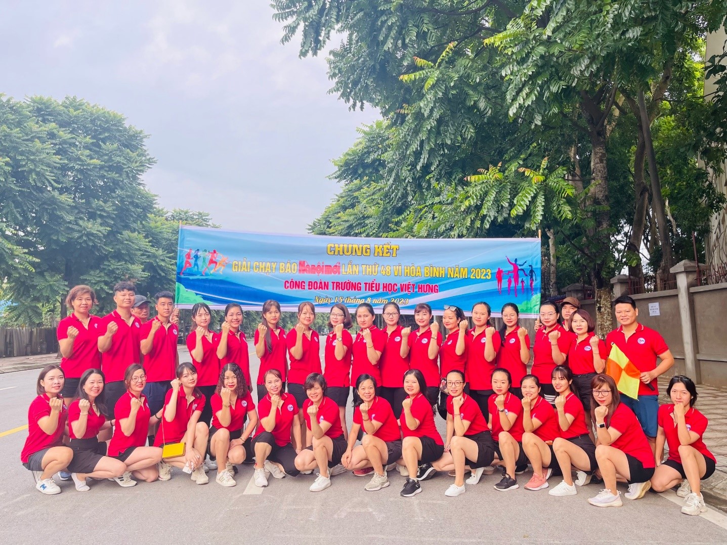 Nhằm đẩy mạnh phong trào “Toàn dân rèn luyện thân thể theo gương Bác Hồ vĩ đại” và “Khỏe để xây dựng và bảo vệ Tổ quốc”, sáng 15/8/2023, Công đoàn Trường TH Việt Hưng đã tổ chức “Giải chạy Báo Hà Nội Mới lần thứ 48 vì hoà bình năm 2023”. Đúng 06 giờ 45 phút, 40 đoàn viên công đoàn nhà trường có mặt đầy đủ tại đường đua trong trang phục thể thao gọn gàng, hào hứng tham gia giải chạy, lan tỏa thông điệp “thể thao đoàn kết-trung thực-cao thượng” vô cùng ý nghĩa trong CBGVNV nhà trường.