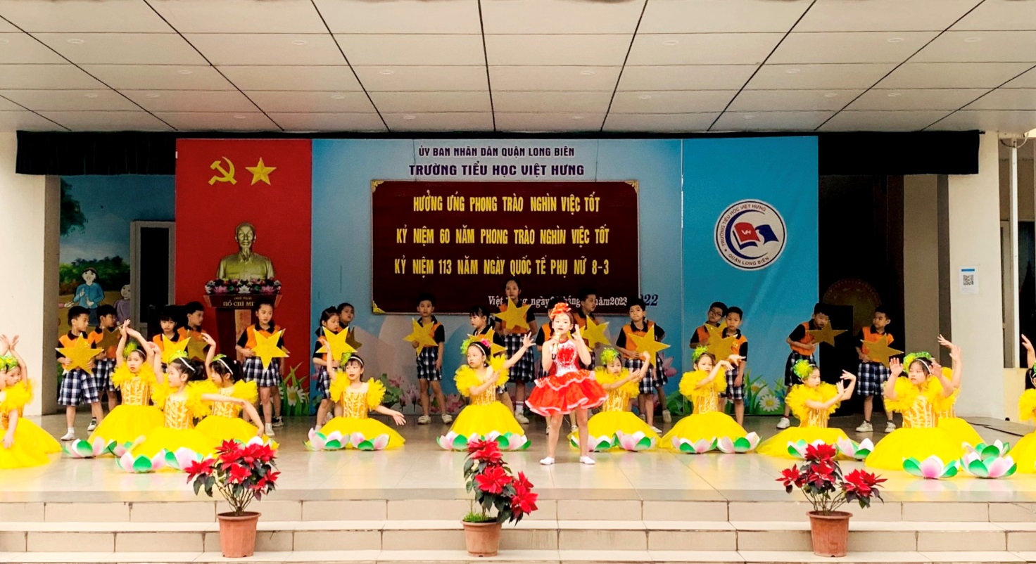 Trong buổi sinh hoạt dưới cờ đầu tuần, trường Tiểu học Việt Hưng tổ chức sinh hoạt dưới cờ kỷ niệm ngày Quốc tế phụ nữ 8/3. Tới dự buổi lễ có sự góp mặt của Ban Giám hiệu nhà trường, giáo viên chủ nhiệm các khối lớp. Mở đầu chương trình là phần trao giấy khen và huy chương ASMO cho các em học sinh đạt giải cao.