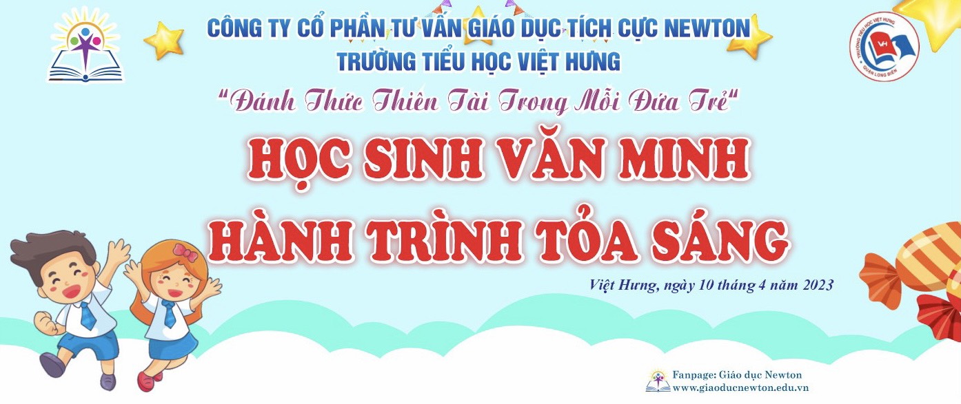 Sáng ngày 10/4/2023, BGH Trường Tiểu học Việt Hưng phốii hợp với Công ty cổ phần giáo dục tích cực Newton tổ chức chuyên đề giáo dục kĩ năng sống cho học sinh trong toàn trường với chủ đề “Học sinh văn minh – Hành trình tỏa sáng”.