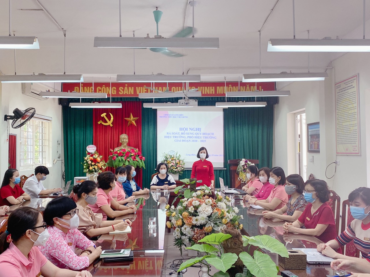 Thực hiện Hướng dẫn số 15-HD/BTCTW ngày 15/11/2012, Hướng dẫn số 06- HD/BTCTW ngày 24/02/2017 của Ban Tổ chức Trung ương về công tác quy hoạch cán bộ lãnh đạo, quản lý theo tinh thần Nghị quyết số 42-NQ/TW ngày 30/11/2004 của Bộ Chính trị (khóa IX) và Kết luận số 24-KL/TW, ngày 05/6/2012 của Bộ Chính trị (khóa XI); Công văn số 1127-CV/TU, ngày 22/02/2019 của Thành ủy Hà Nội về việc rà soát, bổ sung quy hoạch cán bộ; Hướng dẫn số 06-HD/QU ngày 11/10/2021 của Quận uy Long Biên về Rà soát, bổ sung quy hoạch Hiệu trưởng, Phó hiệu trưởng các trường công lập thuộc Quận giai đoạn 2020-2025, ngày 20/10/2021 trưởng tiểu học Việt Hưng đã tổ chức Hội nghị rà soát bổ sung quy hoạch Hiệu trưởng, Phó hiệu trưởng giai đoạn 2020 – 2025.