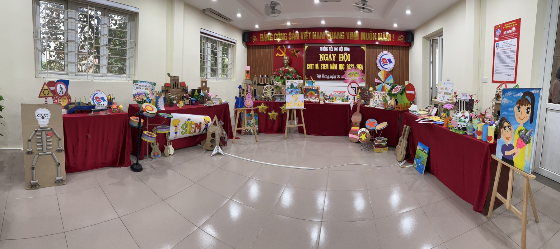 Các sản phẩm trưng bày của ngày hội Stem trường Tiểu học Việt Hưng