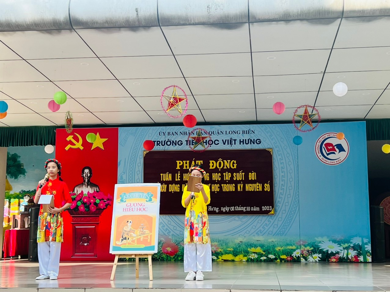 Sáng ngày 02 tháng 10, trường Tiểu học Việt Hưng tưng bừng tổ chức phát động “Tuần lễ hưởng ứng học tập suốt đời năm 2023”. Tuần lễ diễn ra từ ngày 02/10/2023 – 08/10/2023 với chủ đề:" Xây dựng năng lực tự học trong kỷ nguyên số."