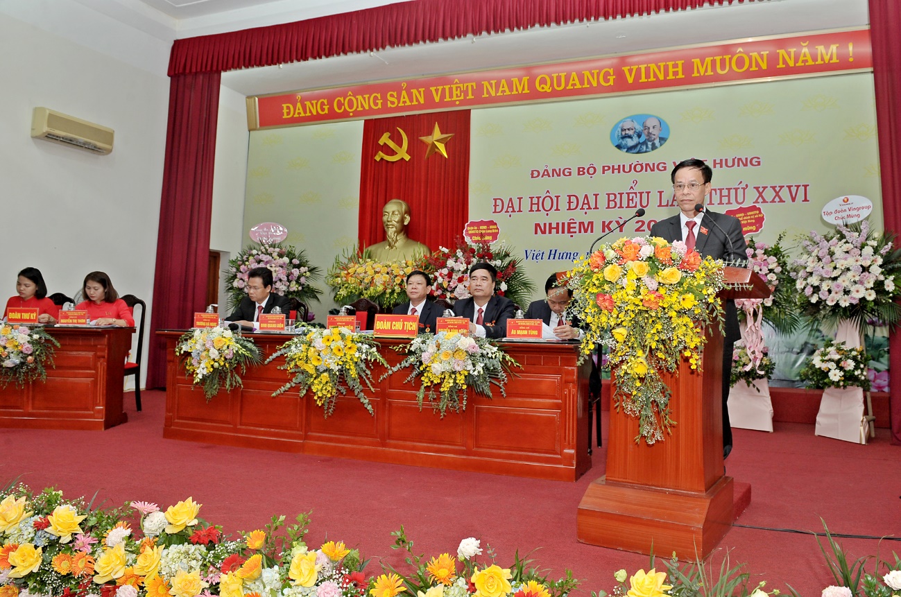Với chủ đề “Tăng cường công tác xây dựng Đảng, hiệu quả hoạt động của hệ thống chính trị; tập trung thực hiện chính quyền đô thị; giữ vững kỷ cương, phát huy trí tuệ, đoàn kết, dân chủ, đổi mới, sáng tạo; xây dựng phường Việt Hưng phát triển bền vững, văn minh và từng bước hiện đại” Đại hội đã thực hiện nhiệm vụ tổng kết công tác lãnh đạo của Ban chấp hành đảng bộ nhiệm kỳ 2015-2020, thông qua bản kiểm điểm của Ban chấp hành, Ban Thường vụ đảng ủy, đóng góp ý kiến cho văn kiện Đại hội đảng bộ cấp trên.