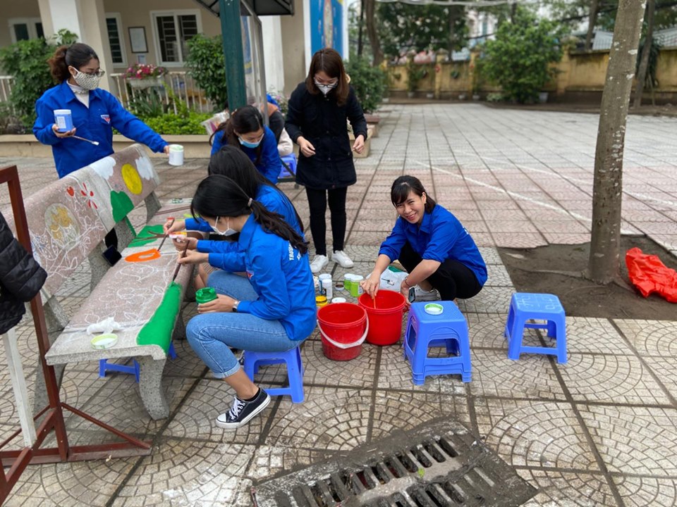 Sau một thời gian tỉ mỉ vẽ, lựa chọn màu sắc, phối màu,... các đoàn viên chi đoàn đã giúp những chiếc ghế đá cũ trở nên đẹp, đầy màu sắc và ấn tượng hơn. Những đôi tay khéo léo của các đoàn viên chi đoàn giúp những chiếc ghế đá như được khoác lên mình một chiếu áo mới. Mỗi chiếc ghế lại được trang trí theo một chủ đề riêng, từ thiên nhiên, cây cối, các loài vật ngộ nghĩnh cho đến hình ảnh của những đàn cá đang tung tăng bơi lội,... Các chủ đề được Chi đoàn lựa chọn đều gần gũi với lứa tuổi học sinh tiểu học. Không chỉ giúp trường đẹp hơn, Chi đoàn còn lồng ghép thêm những thông điệp thông qua những chiếc ghế như “Nói không với rác thải nhựa”, “Doraemon với an toàn giao thông”, “Em yêu mái trường Việt Hưng”, “Em yêu thiên nhiên”,...