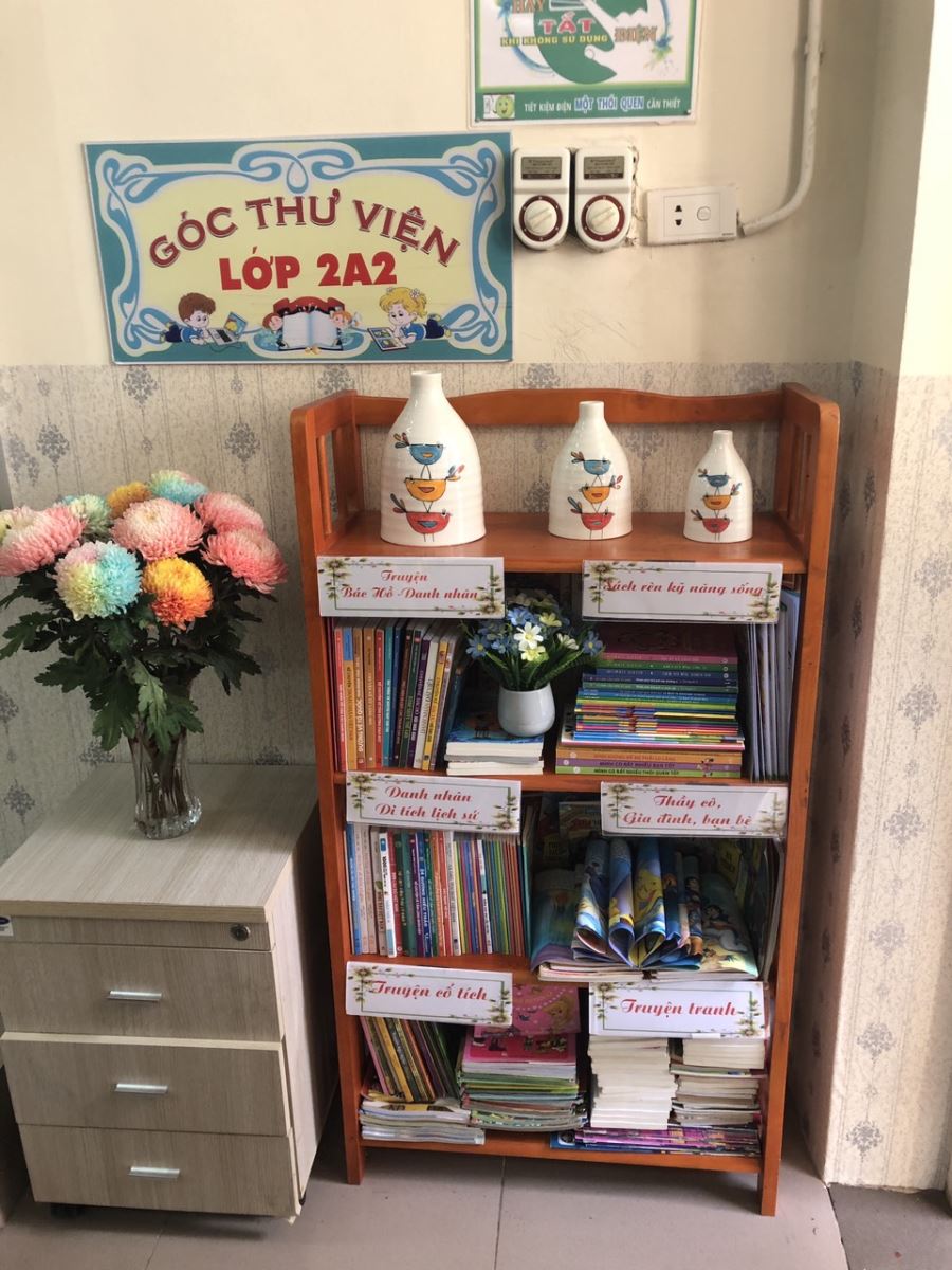 Dưới đây là một số hình ảnh góc thư viện khối 2 lớp đạt giải cao trong hội thi “Góc thư viện sáng tạo” do Thư viện kết hợp với Đoàn Đội tổ chức.