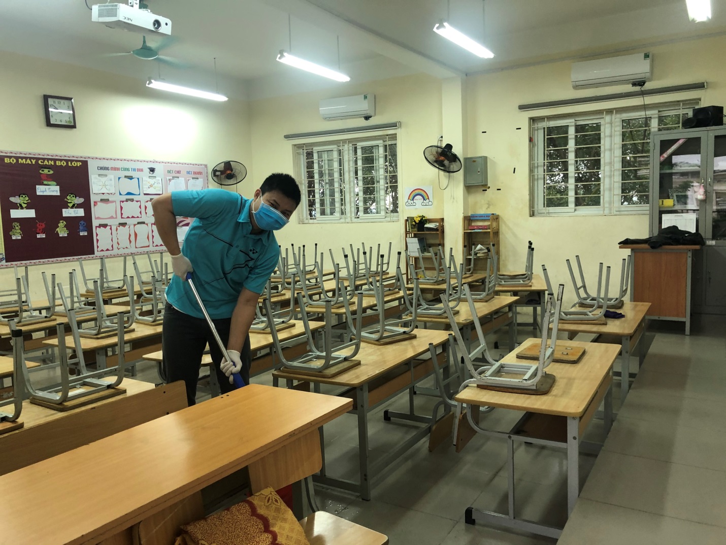 Vệ sinh lớp học bằng dung dịch sát khuẩnCloramin B