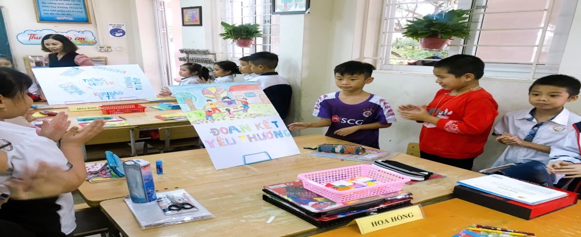 Các chủ đề tranh thật ý nghĩa, mang tính thời sự, thể hiện suy nghĩ, sự quan tâm của các em về các vấn đề xã hội : An toàn giao thông, Phòng chống dịch bệnh… tình yêu đất nước, yêu trường lớp, tình cảm thầy trò : Việt Nam, Tri ân thầy cô, Đoàn kết yêu thương…Mỗi bức tranh mang một sắc thái tình cảm riêng, một thông điệp riêng các em muốn nhắn gửi tới mọi người.Mỗi nhóm một ý tưởng sáng tạo với thông điệp riêng, các em thực sự hạnh phúc khi sản phẩm của mình hướng tới một vấn đề, một khía cạnh nào đó của xã hội.Hạnh phúc hơn cả là thông điệp nóng hổi về đại dịch Covid đang hoành hành trên phạm vi toàn cầu, các em thể hiện sự quan tâm, tinh thần trách nhiệm của học sinh trong việc phòng bệnh, chấp hành nghiêm chỉnh theo chỉ thị của Thủ tướng Chính phủ. Hạnh phúc là công dân nhỏ Việt Nam góp phần chung tay, quyết tâm đẩy lùi dịch bệnh.