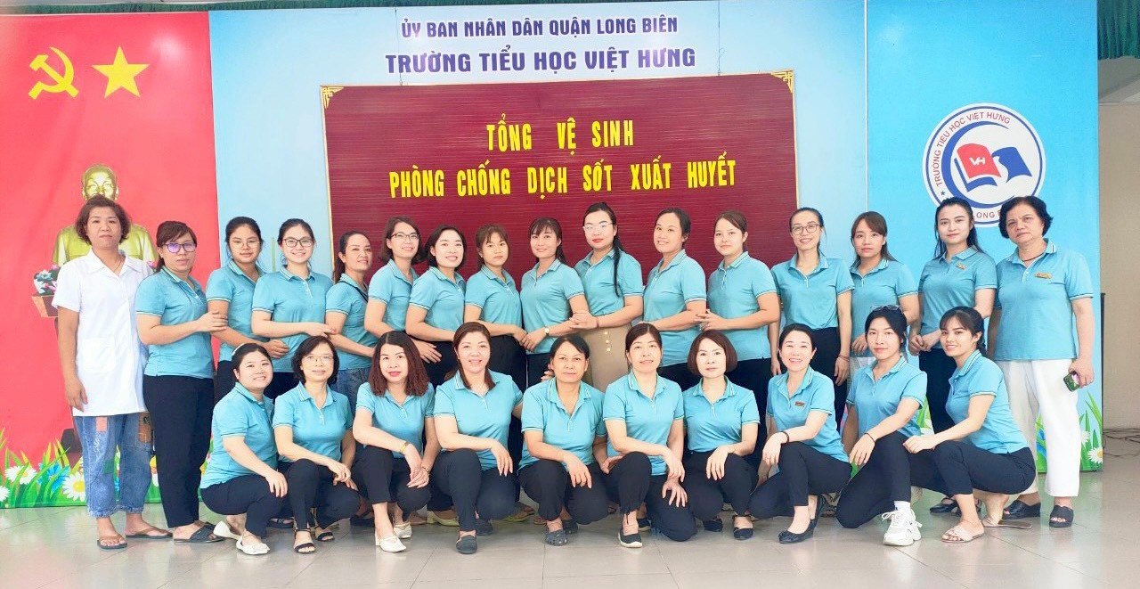 Trong nhiều năm qua, hoạt động tổng vệ sinh phòng chống dịch sốt xuất huyết được toàn thể CBGVNV và học sinh Trường Tiểu học Việt Hưng duy trì thường xuyên, hằng ngày. Như thường lệ, thứ sáu hàng tuần – kể cả trong kì nghỉ hè, 100% CBGVNV nhà trường thực hiện tổng vệ sinh tất cả các phòng ban, sân trường và mọi khu vực trong để đảm bảo công tác phòng dịch hiệu quả nhất.
