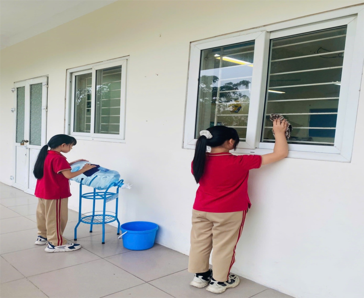 sinh môi trường, dọn dẹp rác thải tại khu vực lớp học, phòng chức năng, phòng